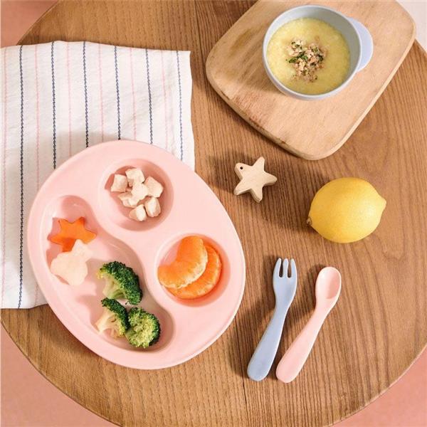 + Đĩa ăn dặm (từ 6 tháng tuổi): thiết kế đĩa để đựng đồ ăn và dễ xúc, ngoài ra đĩa ăn dặm có lòng rộng, tay cầm hai bên để đựng và lấy thức ăn.