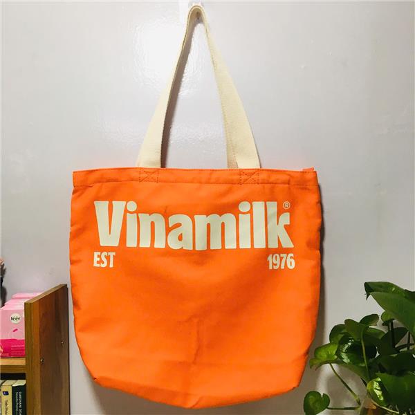 CAM ĐÀO: Túi Tote VINAMILK Size Lớn Có Dây Kéo  CAM DAO: Tui Tote VINAMILK Size Lon Co Day Keo