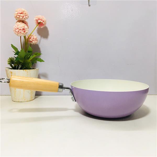 + Mặt ngoài sản phẩm được phủ lớp sơn chịu nhiệt màu tím pastel nhẹ nhàng, dịu mắt. Bên trong lòng chảo được phủ lớp chống dính Ceramic an toàn, dễ vệ sinh
