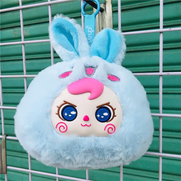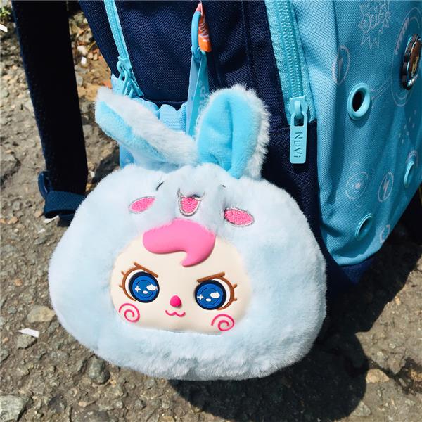 - Chất liệu: vải lông thỏ, bông polyester, mặt silicone, móc khoá kim loại
