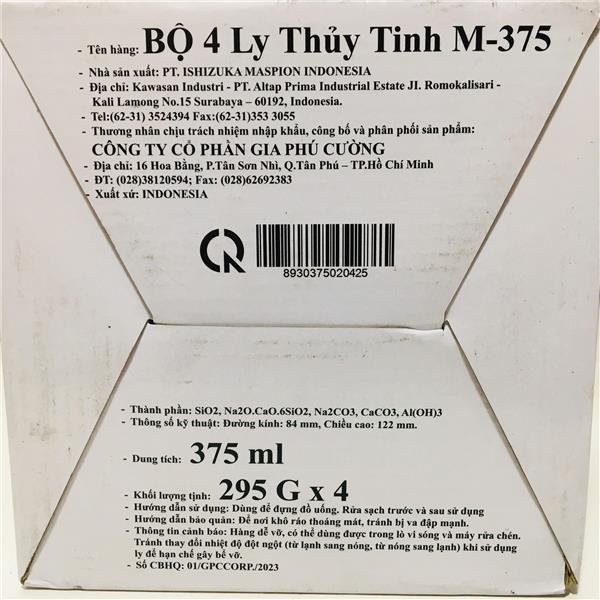 Hộp 4 Ly Thủy Tinh M-375 LAVIE 375ml  Hop 4 Ly Thuy Tinh M-375 LAVIE 375ml