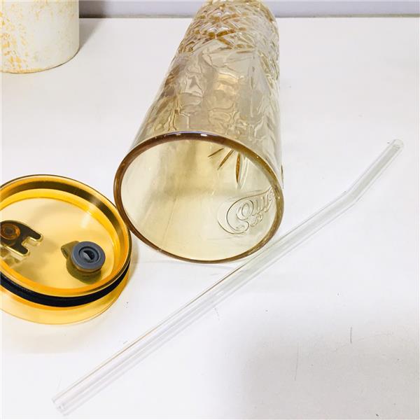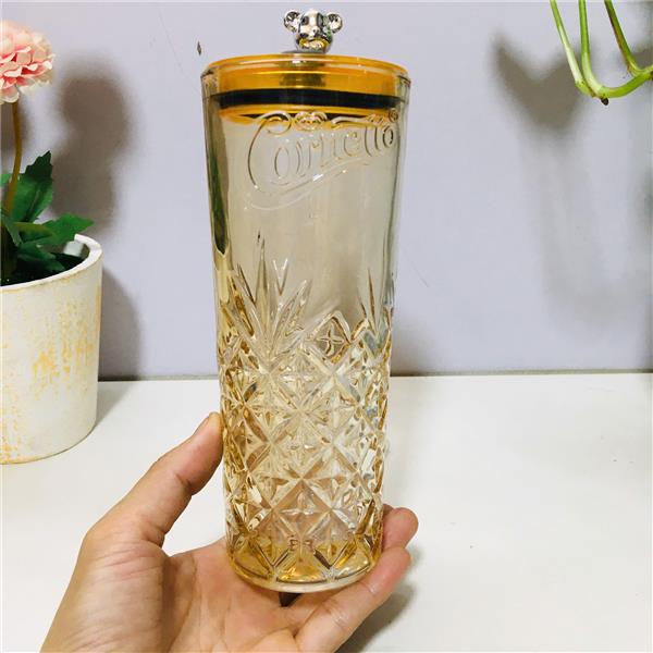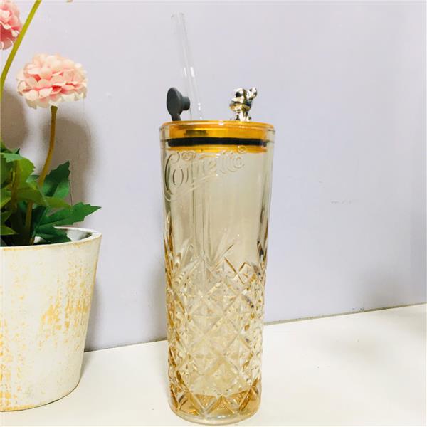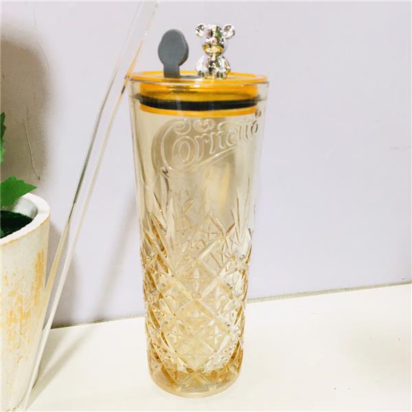 LY THỦY TINH CORNETO 400ML Thân Cao Kèm Ống Hút Thủy Tinh - MÀU VÀNG