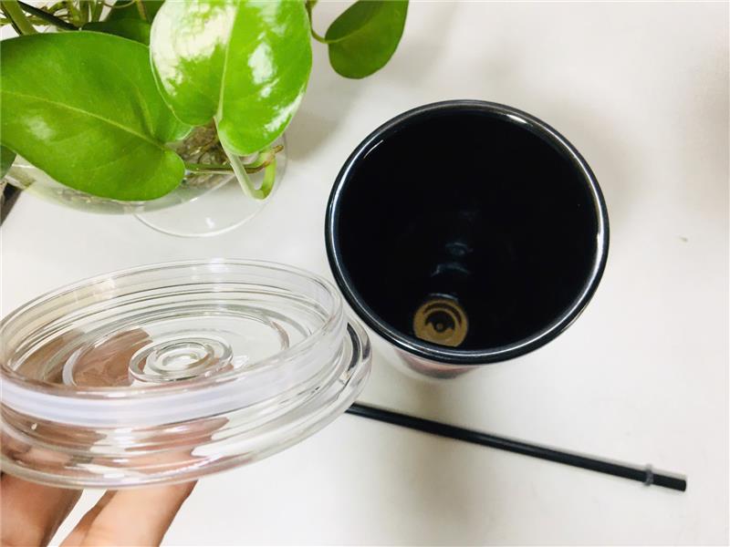 - Thành phần: thân nhựa và nắp PS, ống hút nhựa PP, ron silicone