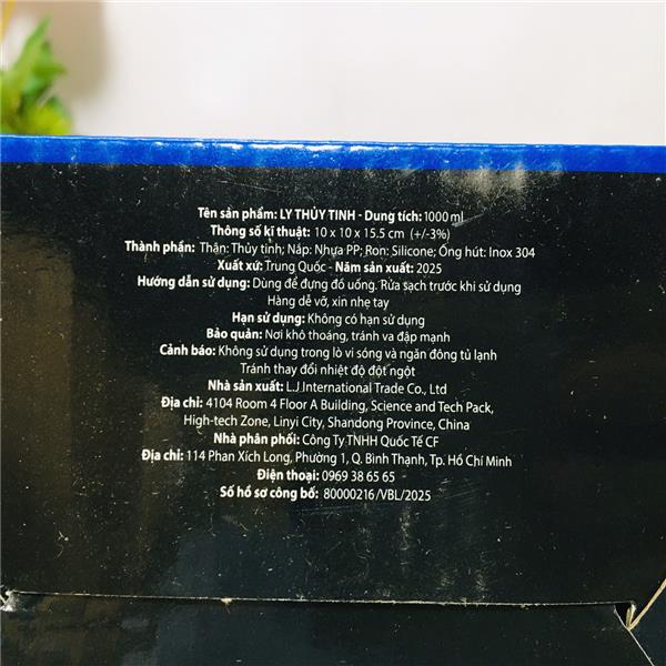 - Thành phần: thân thủy tinh; nắp nhựa PP, ron silicone, ống hút inox 304