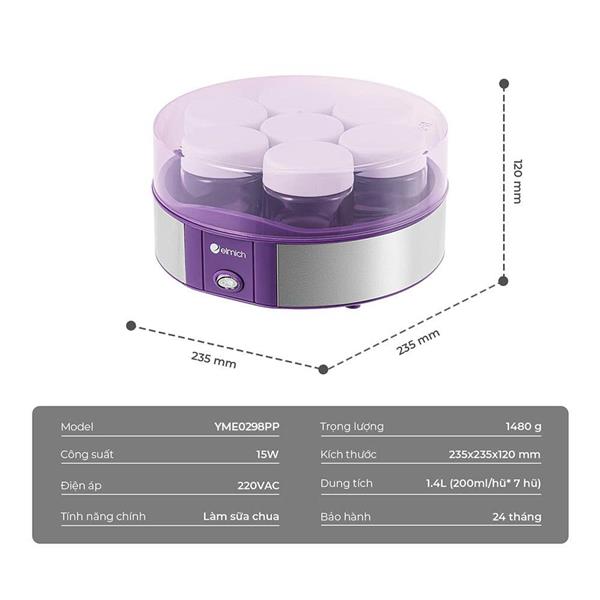 Máy Làm Sữa Chua Elmich YME0298PP MÀU TÍM