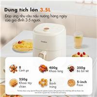 + Dung tích 3.5 lít – nhỏ gọn, tiện dụng: Phù hợp nấu các món ăn hằng ngày: khoai tây chiên, cánh gà, đùi gà, tôm, cá, bánh nướng...
