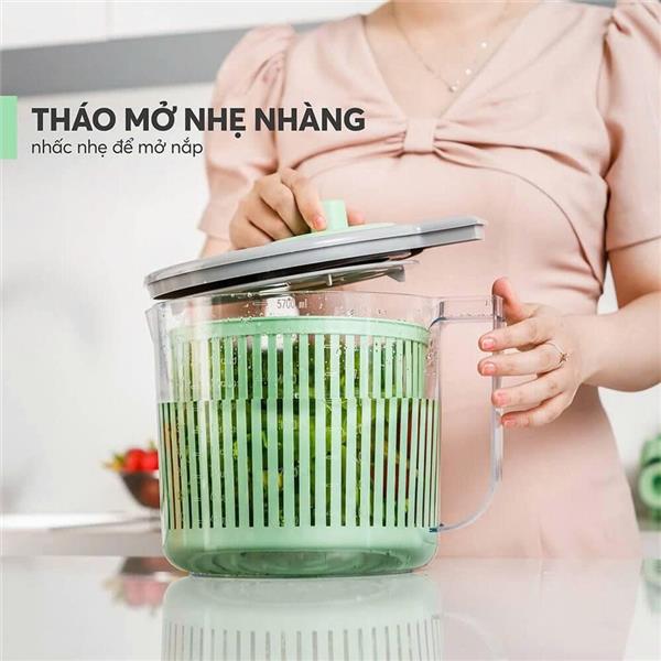 Nếu bạn từng chế biến salad mà rau còn đọng nước khiến sốt bị loãng, hoặc từng bị dầu mỡ bắn tung tóe khi xào rau vì rau chưa ráo kỹ… bạn sẽ hiểu cảm giác bất tiện đó rõ hơn ai hết. Đặc biệt là với những gia đình sống ở chung cư, không gian bếp hẹp – việc vẩy rau thủ công là điều gần như bất khả thi.